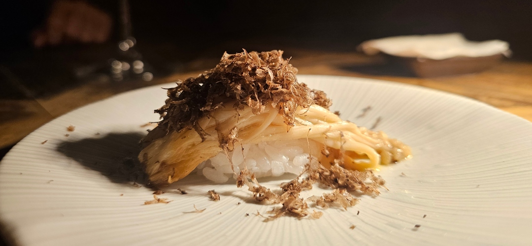 La experiencia se articula en torno a un único menú omakase de 12 pases (85€) con el que se apuesta por la confianza absoluta en la mano del chef.Comienza con entrantes frescos y ligeros una selección de nigiris y sashimis, donde cada pieza de pescado o marisco se trabaja con máxima precisión, combinando técnicas tradicionales con matices nikkei y acompañamientos sorprendentes como trufa rallada, ají amarillo o foie gras marinado. Los platos calientes y elaboraciones a fuego lento, como brochetas, gyozas de wagyu o lubina con mantequilla miso, destacan por su equilibrio entre textura, sabor y temperatura, mostrando la maestría técnica del chef. El menú se completa con un postre que cierran la experiencia con un contrapunto dulce, ofreciendo un final memorable que respeta la armonía de la degustación. Cada categoría de platos se sirve en su momento preciso, creando una narrativa sensorial que guía al comensal a lo largo de los 12 pases de la experiencia omakase