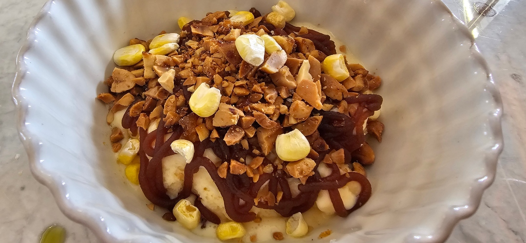 La propuesta gastronómica de GranDuke es deliberadamente contenida en extensión, pero amplia en discurso. Cada plato funciona como un punto de encuentro entre territorios, técnicas y memorias culinarias. Así conviven elaboraciones como el mero de costa curado, el tortello de ricota con hierbabuena, mollejas y botarga, o una lenteja beluga con gamba roja y nata de oveja que redefine el concepto de legumbre. Los noodles caseros con ragú de jabalí dialogan con una urta reposada acompañada de gazpacho templado de espinaca, mientras que el guiso de callos —convertido ya en icono de la casa— reivindica la vigencia de la cocina más castiza.