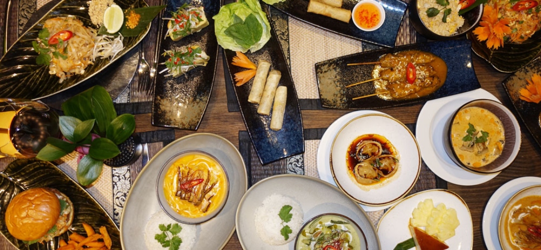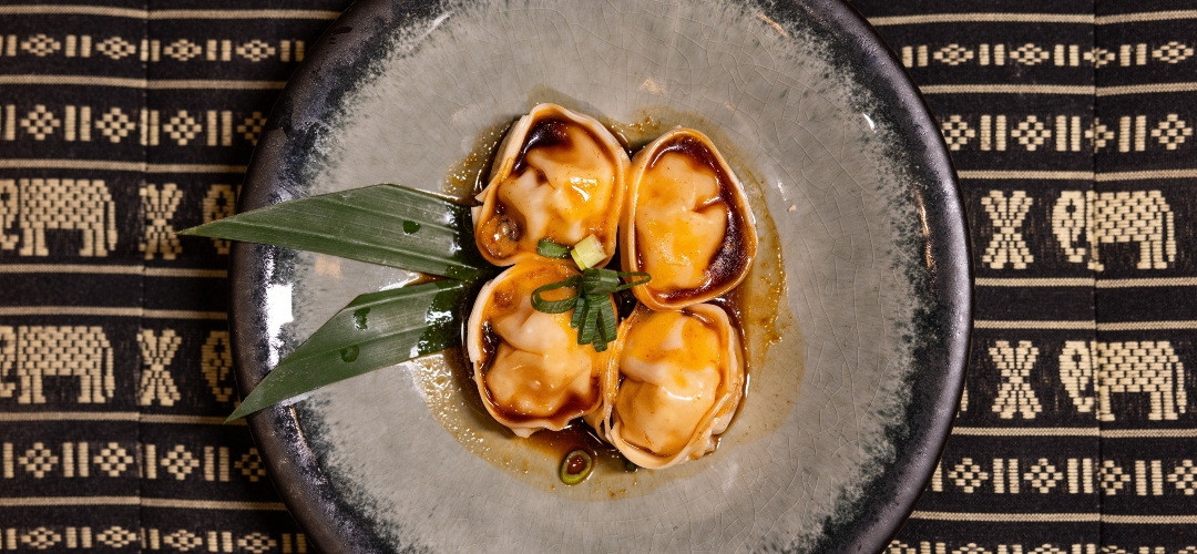 Aquí la cocina tailandesa se presenta en una versión refinada, donde cada plato busca equilibrio, profundidad y claridad. El recorrido comienza con entrantes que marcan el tono. Las brochetas de pollo Kai Satee, jugosas y aromáticas, se sirven con su clásica salsa de cacahuete; los triángulos de pato Parn Thong aportan un contraste crujiente; y las colas de langostino Khung Siam, con su rebozado ligero y la salsa agridulce de piña, introducen un perfil fresco y bien definido.