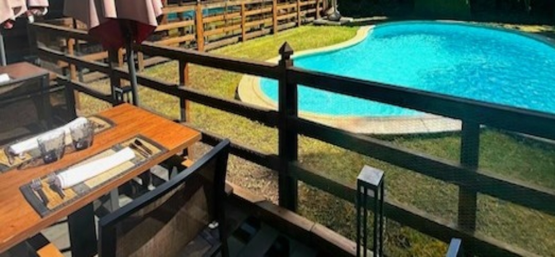 El interior mantiene esa misma línea estética y emocional. El comedor principal, con grandes vidrieras abiertas al jardín, permite disfrutar del entorno incluso desde dentro, creando una continuidad visual muy atractiva entre sala y exterior. Una opción especialmente agradable cuando cae la noche o en días más templados, sin renunciar a la atmósfera del espacio.