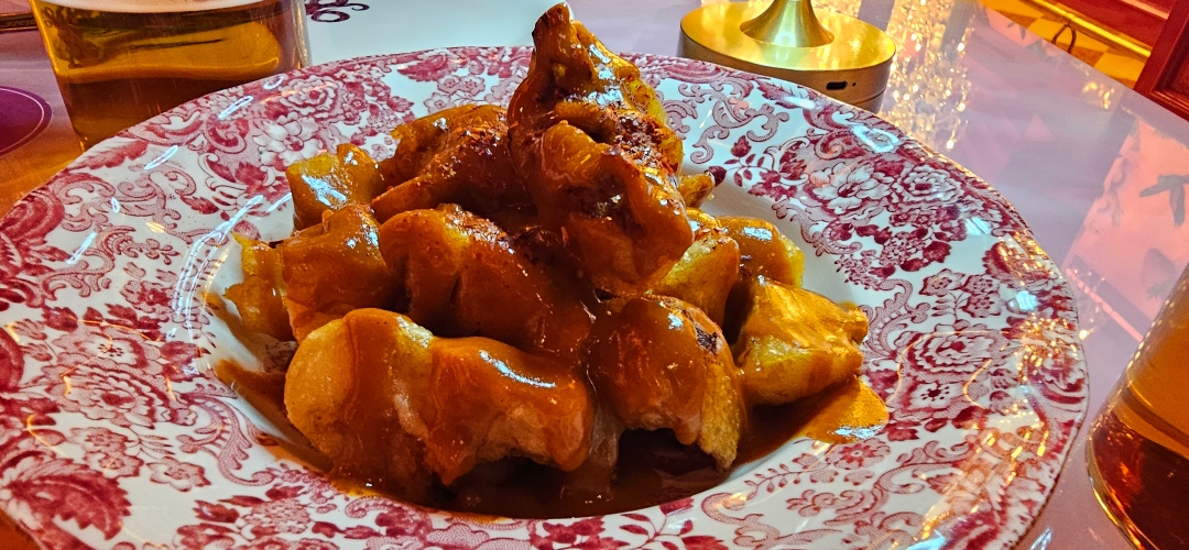 Uno de los grandes protagonistas es su original carta de sangrías, concebida como una auténtica colección líquida. Desde versiones clásicas —incluida la opción sin alcohol— hasta combinaciones más atrevidas con champagne, vino de Jerez o pacharán, la experiencia convierte la barra en un espectáculo visual gracias a su sistema de grifos.